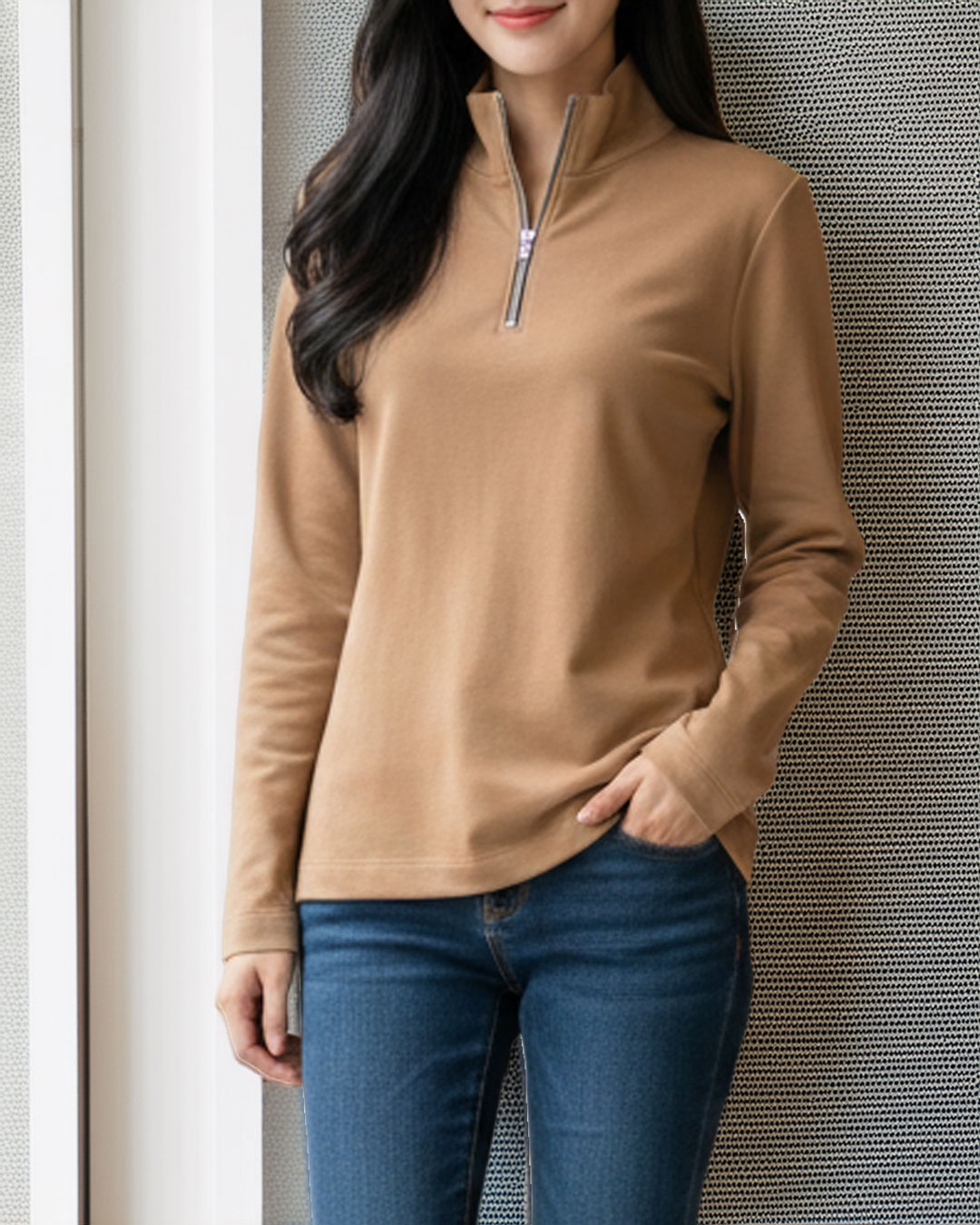 Color: Mocca, fácil de combinar. Tejido: 50% algodón – 50% viscosa, suave y transpirable. Estilo: Cómodo, clásico, casual, versátil.